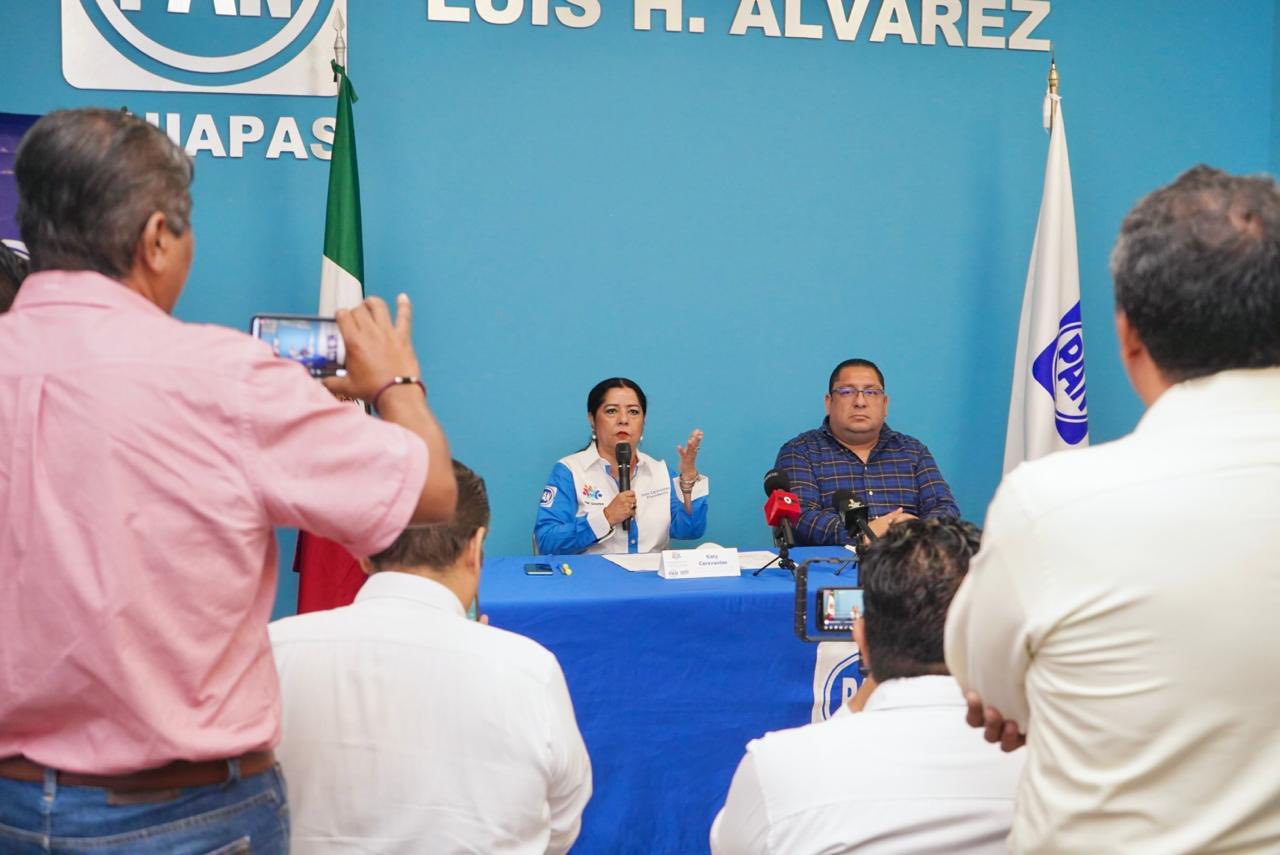 En conferencia de prensa, la presidenta estatal del PAN, Katy Caravantes, acompañada del secretario general, Christian Maldonado Juárez, fijó postura ante la aprobación del Presupuesto de Egresos de la Federación 2026, al que calificó como una decisión irresponsable que endeuda a México y recorta recursos esenciales para las familias.